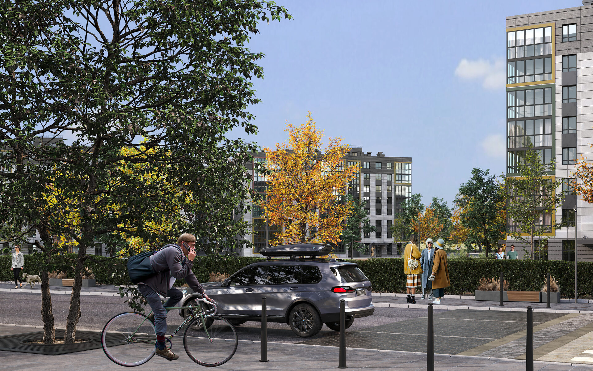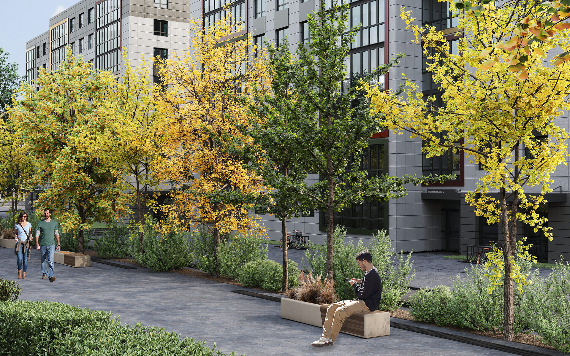 Входные группы выполнены на уровне земли, что обеспечивает комфортный доступ для родителей с колясками, велосипедистов и людей с ограниченными возможностями.